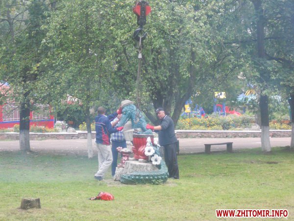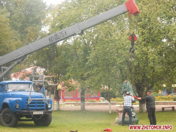 Для установки памятника пришлось демонтировать скульптуру крокодила Гены и других сказочных персонажей, которые стояли в парке еще со времен СССР. В мэрии Овруча заверили, что скульптуры на свалку не отправят, их просто перенесли в сторону, чтобы освободить место для памятника словацким воинам.
