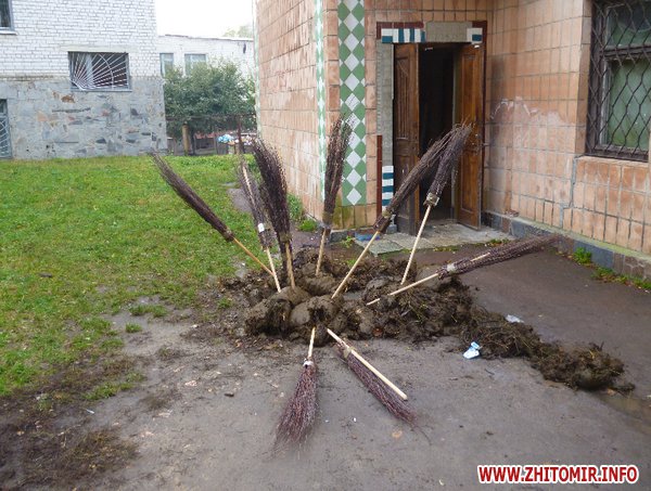 У четвер, 11 жовтня, близько 7:00 перед виборчим штабом кандидата в народні депутати Павла Жебрівського по 63-му Бердичівському округу одинадцятеро осіб із закритими обличчями привезли й залишили після себе купу гною.
