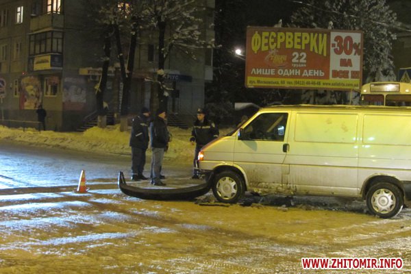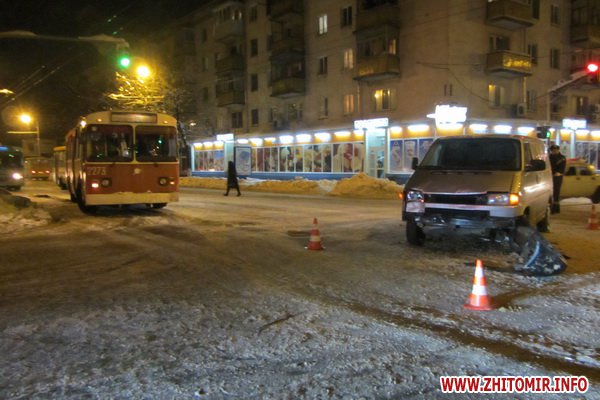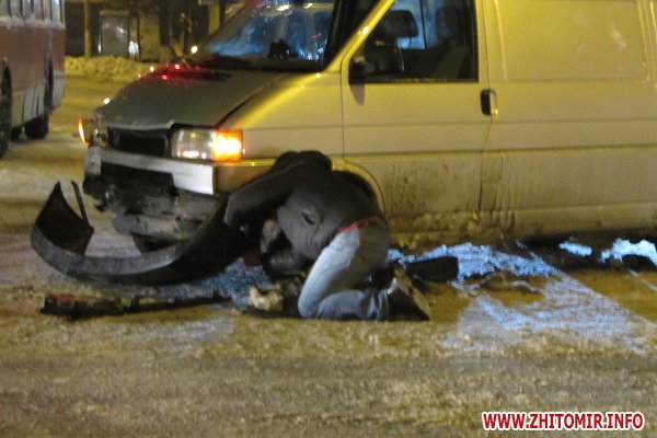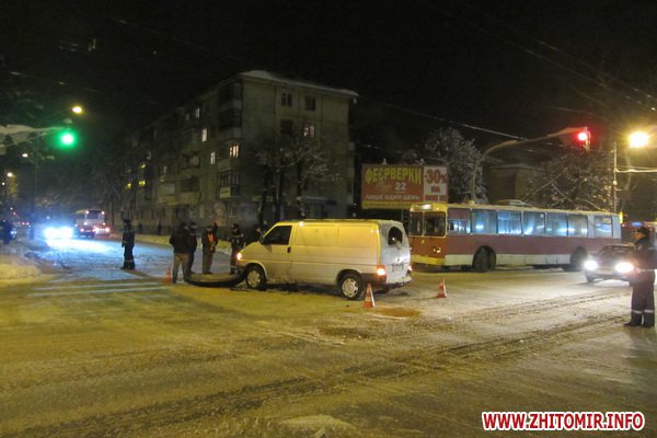 Вечером, 8 декабря в Житомире, на регулируемом перекрестке микроавтобус Фольксваген столкнулся с пожарной машиной, которая ехала на вызов.