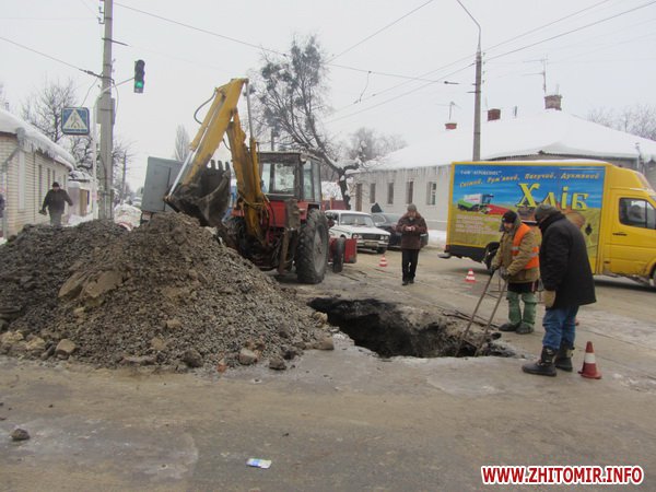На фото порыв водопровода по ул. Б. Тена в Житомире