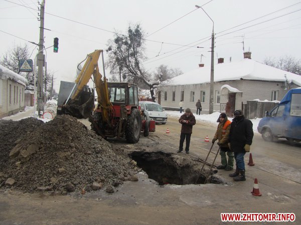«В Житомире произошло два сложных порыва на 300 мм трубах водопровода. Это связано с оползнями и сложными погодными условиями. Не смотря на сильный мороз, люди работают в усиленном режиме и обещают завершить ремонт в течение дня», - сообщили в пресс-службе КП «Житомирводоканал».
