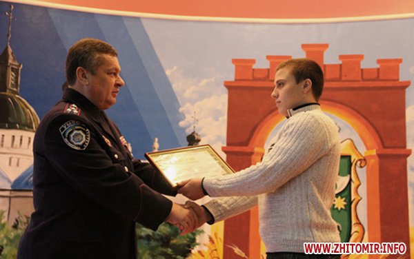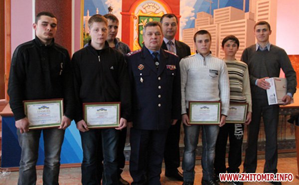 Пятеро учеников Бердичевского профессионального строительного лицея, которые помогли правоохранителям задержать грабителя, были награждены почетными грамотами УМВД Украины в Житомирской области и ценным подарком.