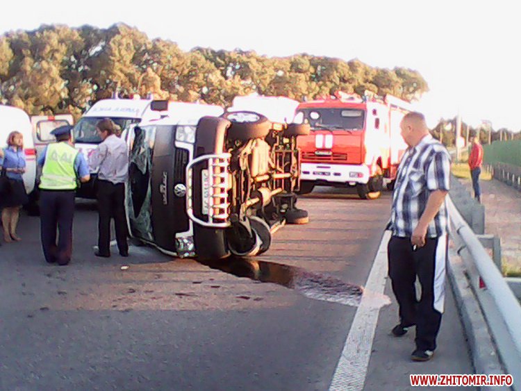 «Дорожно-транспортное происшествие произошло 17 июля, около 20.00, на 119 км автодороги Киев-Чоп в Коростышевском районе. Водитель микроавтобуса VOLKSWAGEN LT 35, житель Волынской области Луцкого района села Лыще, 1961 года рождения, двигаясь в направлении города Киева, не справился с управлением, допустил занос автомобиля, совершил столкновение с колесоотбойником, вследствие чего произошло переворачивание микроавтобуса на правый бок», - поинформировали в дежурной части Госавтоинспекции.