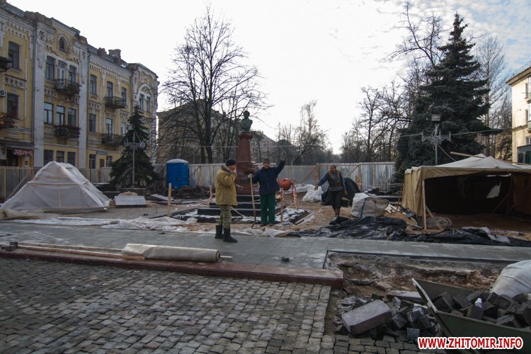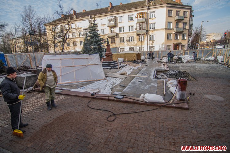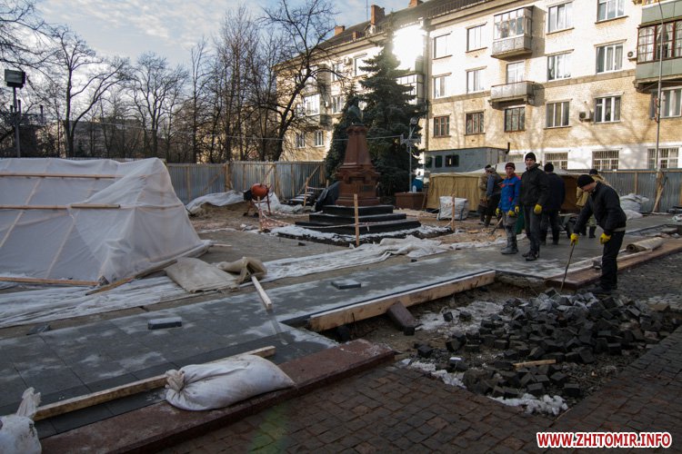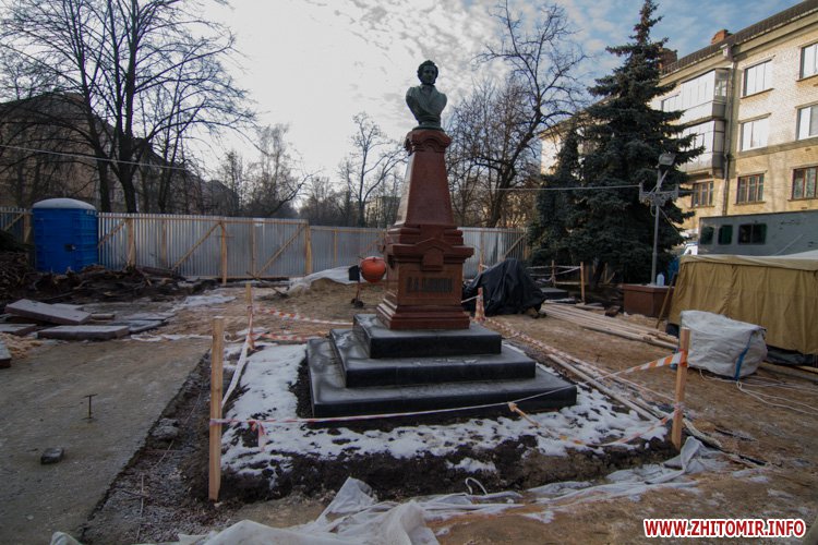 Как сообщал Житомир.info, в середине ноября на Старом бульваре появился забор вокруг памятника Пушкину. Начальник управления капитального строительства горсовета Аллы Корж говорила, что планируют за месяц вместо асфальта положить гранитную брусчатку и заменить гранитные плиты у подножия памятника.