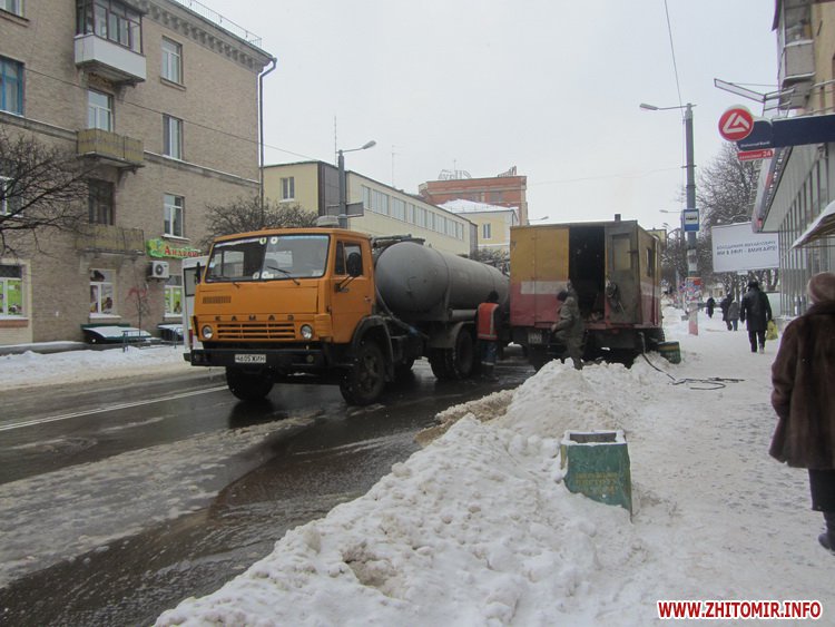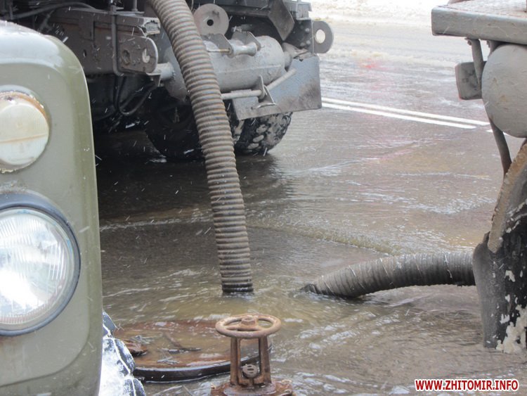 Авария произошла около 12.00 в начале улицы Черняховского, недалеко от площади Соборной. Вода бурным и широким потоком стекает вдоль тротуара вниз к Чудновскому мосту. Из-за этого пешеходы не могут перейти дорогу.