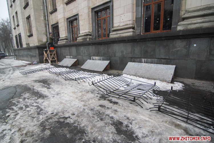 Как сообщал Житомир.info, решетки на окнах здания на площади Королева, где находится облгосадминистрация и областной совет, установили за одну ночь накануне внеочередной сессии 29 января. Решетками также защитили окна полуподвального помещения на площади Королева,1, где вместо коммунальной столовой открыли бар.