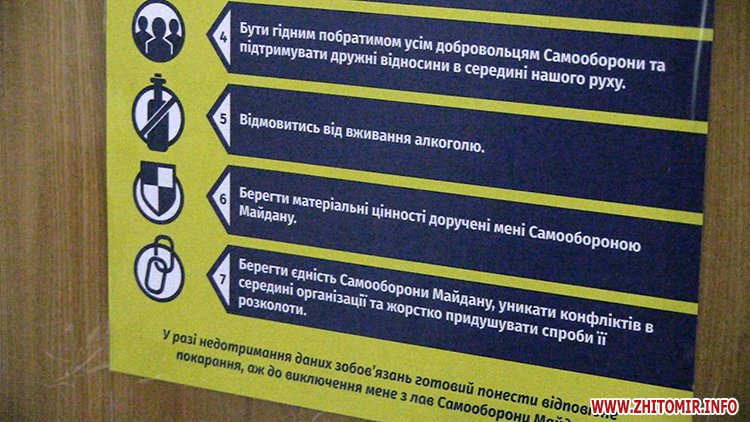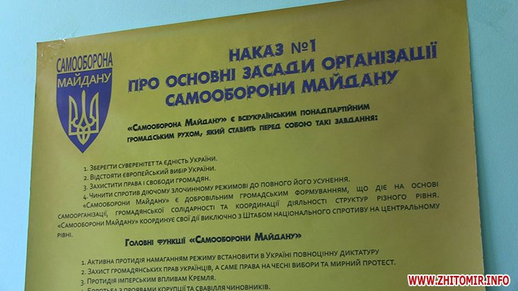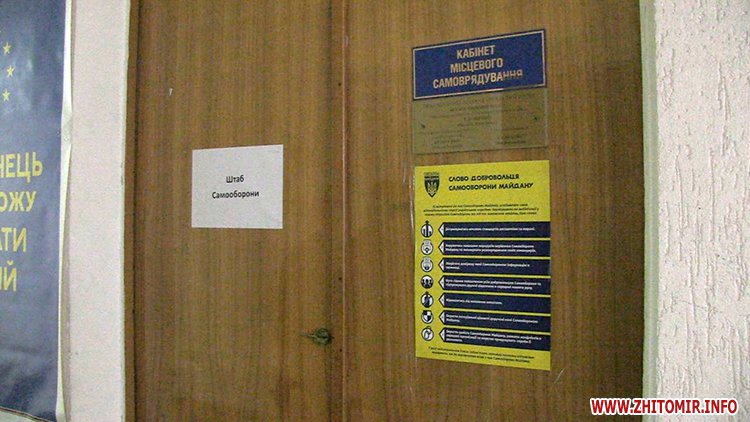 Житомиром шириться інформація, що самооборона грабує кабінети облдержадміністрації, а ночами п’яні активісти б'ють перехожих і займаються мародерством. Ці історії чули і у штабі самооборони, але обвинувачення відкидають.