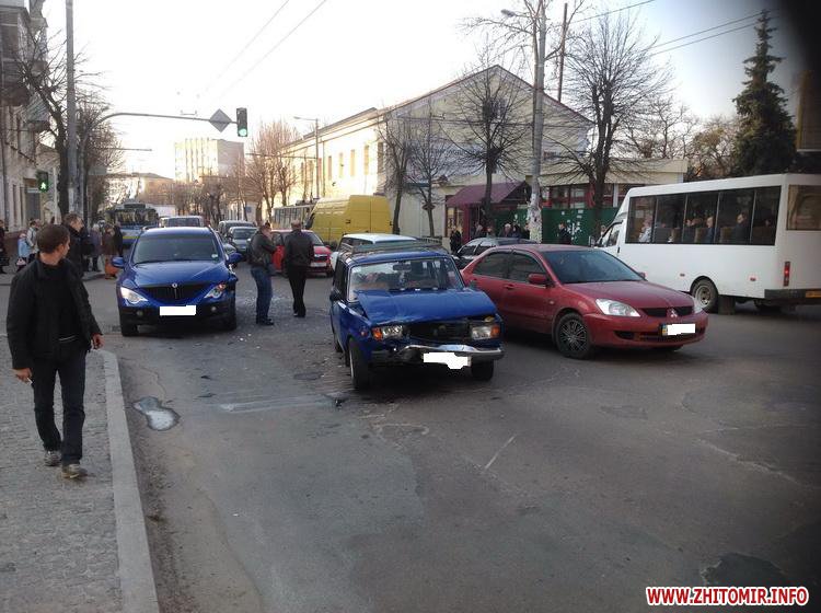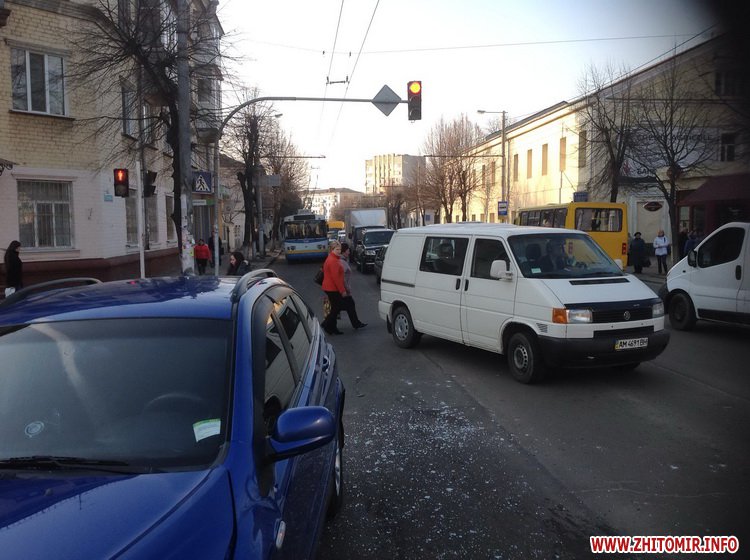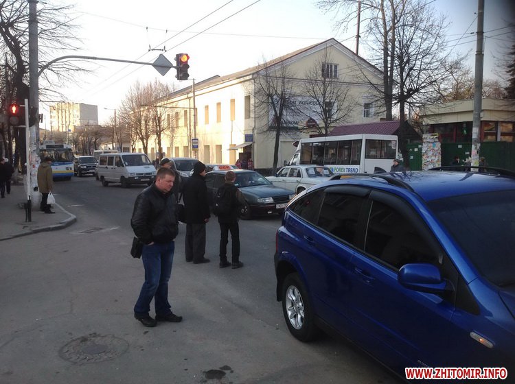 Не успели житомирские дорожники убрать цветочные клумбы, перекрывающие въезд на Старый бульвар со стороны улицы Большая Бердичевская, как на перекрестке произошла авария.
