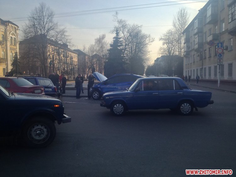 14 марта около 16.00 на Большой Бердичевской возле памятника Пушкину столкнулись три машины.