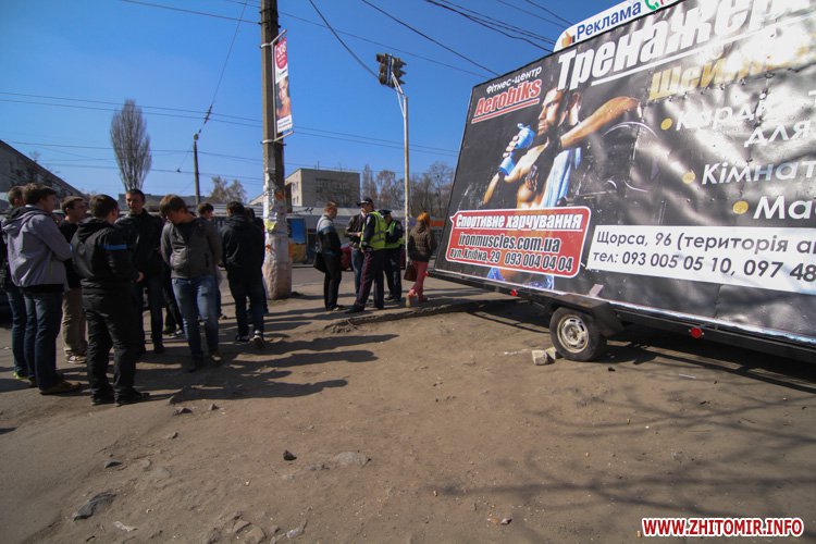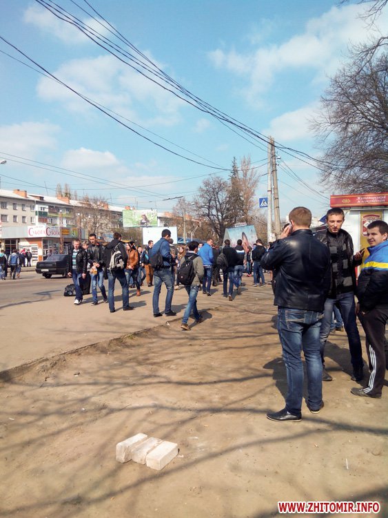 28 марта несколько десятков студентов Житомирского агротехнического колледжа занимались благоустройством территории учебного заведения и собирались восстановить газон по улице Щорса. Для этого студенты отодвинули прицеп с рекламой, который стоял на месте газона у ворот колледжа.