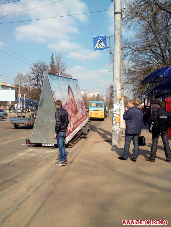 «Мы изучили этот вопрос с юридической точки зрения, проработали его с ГАИ, с КП «Реклама», КП «Инспекция по благоустройству» и со всеми остальными службами. На данный момент законных способов забрать эту рекламу не было. Каждый день ГАИ мониторит размещение всех этих щитов. Вы видели, изначально эти прицепы анкерились к асфальту, поэтому мы хотели под средством штрафов заставить их убрать эти прицепы. Сейчас эти конструкции оформлены как реклама на транспорте, разрешения и сертификаты на них получены в Крыму. Владельцы привезли их в Житомир и поставили, а наше ГАИ к ним не имеет никакого отношения. У меня был разговор с собственниками этой рекламы. Я сказал, что этих конструкций в городе Житомире не будет. Но я пока не вижу, что мы услышали друг друга. Дайте время до понедельника», - рассказал Сергей Сухомлин.