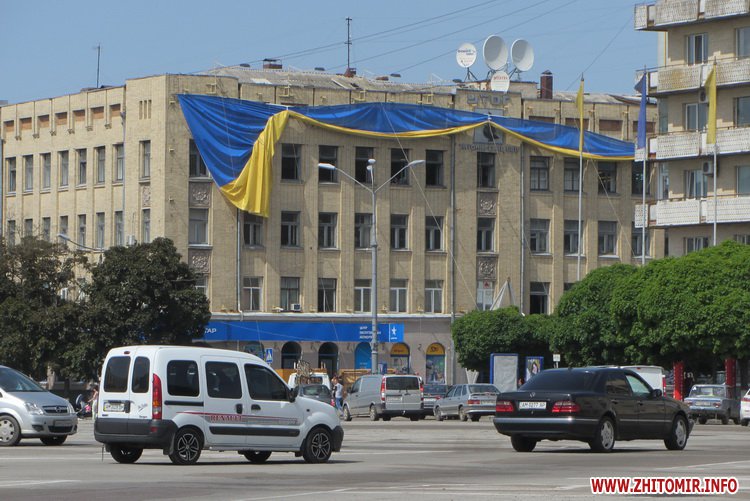 В Житомирі збираються встановити рекорд України, вивісивши найбільший національний прапор на фасаді будинку, що на майдані Соборному.