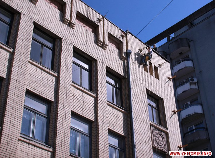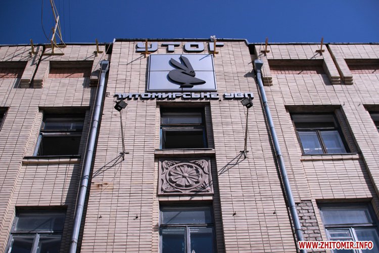 У переддень заходу велетенський жовто-блакитний стяг, розміром 450 квадратних метрів та вагою 150 кг почали розміщувати на будівлі Житомирського учбово-виробничого підприємства УТОГ.
