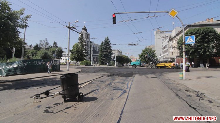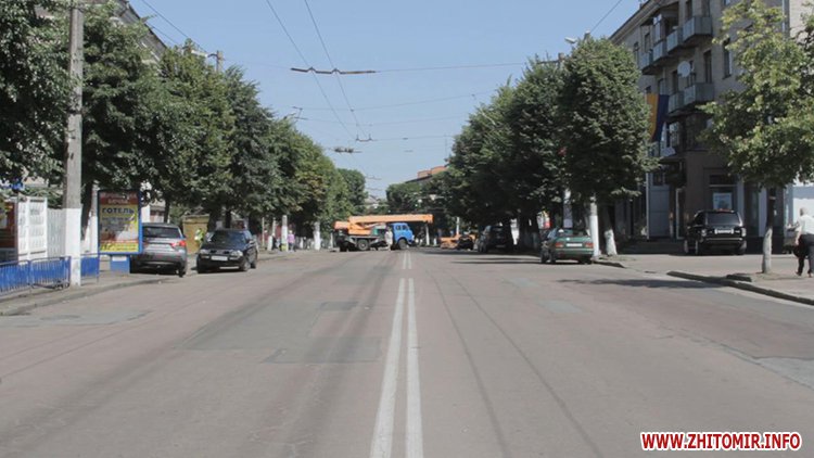 Утром 7 июля в Житомире начали капитальный ремонт центральной улицы города. Для этого временно приостановили движение транспорта на перекрестке Театральная-Киевская.
