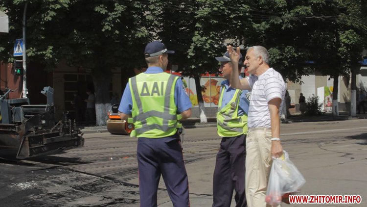 Перескакивая свежую смолу, одни житомиряне радуются, что наконец-то в городе будут хорошие дороги, другие же жалуются, потому что их не предупредили о перекрытии центральной улицы.