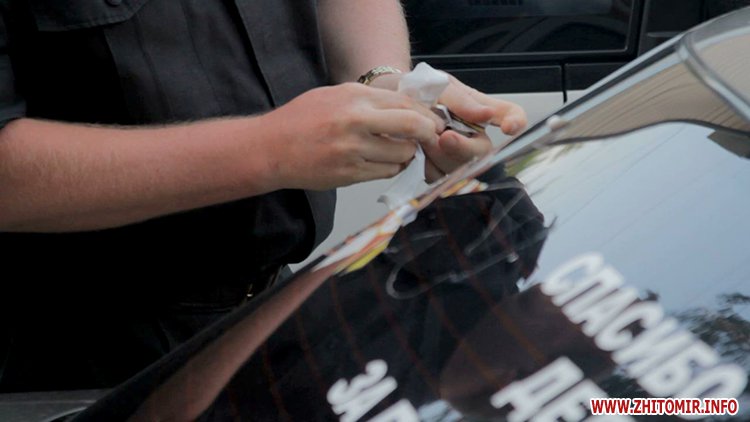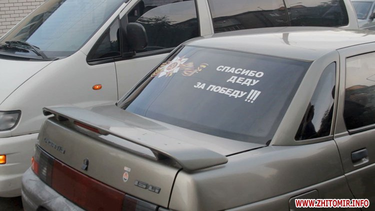 В Житомире активисты местного Автомайдана вечером 15 июля остановили машину с «колорадской» ленточкой.