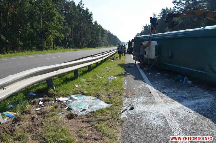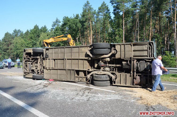 Около 7:20 26 июля на 93 км автодороги Киев – Чоп в Коростышевском районе водитель автобуса Mercedes-Benz, 62-летний житель Ивано-Франковска, двигаясь в направлении Киева, не справился с управлением, врезался в колесоотбойник, после чего автобус перевернулся. В ДТП водитель и трое пассажиров автобуса получили травмы и доставлены в больницу.