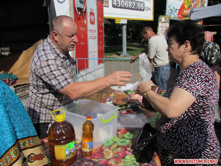 М'ясо, риба, масло, яйця, овочі, фрукти, хліб та солодощі – такий гастрономічний набір можна було придбати у Житомирі на ярмарку сільськогосподарської продукції, який відбувся 16 серпня на вулиці Лятошинського.