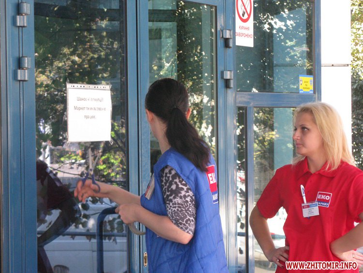 Около 9.45 сотрудники магазина расклеили на дверях листы бумаги с надписью: «Уважаемые покупатели! Маркет временно не работает».