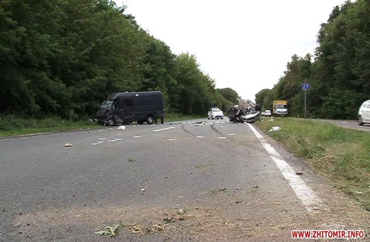 ДТП произошло на 27 км автодороги Житомир - Могилев-Подольский. Автомобиль Skoda, за рулем которого находилась женщина, ехал в сторону Бердичева и неожиданно вылетел на полосу встречного движения, где столкнулся с микроавтобусом Mercedes. Водитель последнего попытался избежать столкновения, но не успел.