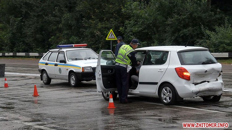 ДТП произошло около 18.00 в районе с.Станишовка Житомирского района, недалеко от пешеходного перехода. Машины двигались в попутном направлении. Skoda притормозила, пытаясь совершить поворот влево, и в нее въехали «Жигули».