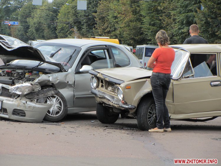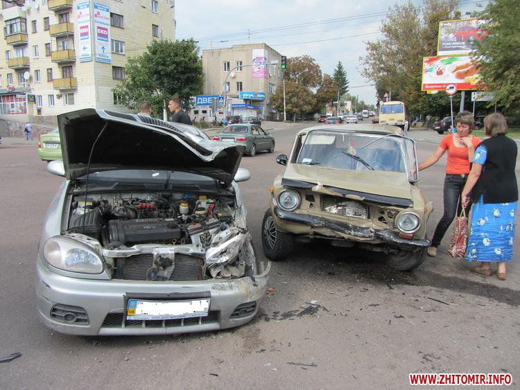На перекрестке улиц Большая Бердичевская – Жуйко в Житомире столкнулись Daewoo Lanos и ВАЗ-2102.