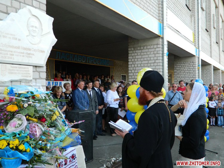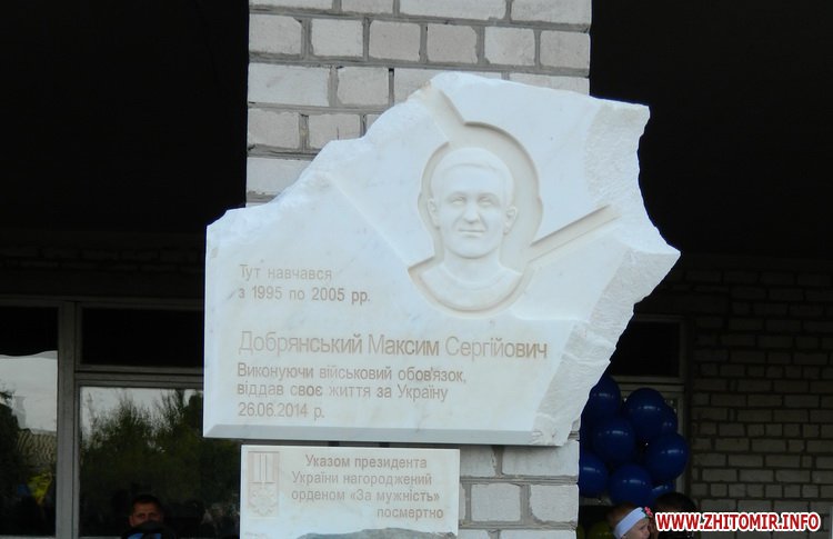 1 вересня в райцентрі Коростишів Житомирської області відкрили меморіальну дошки Максиму Добрянському, який загинув під час виконання службового обов’язку в зоні АТО.