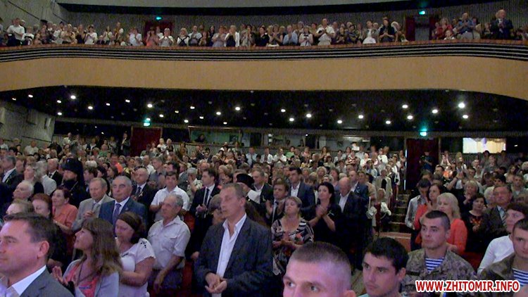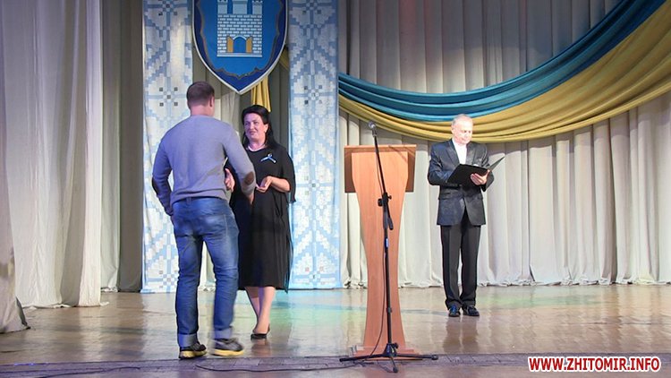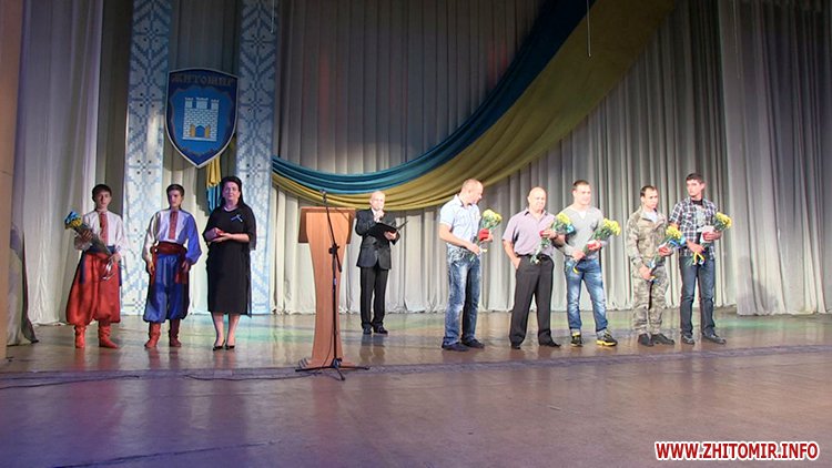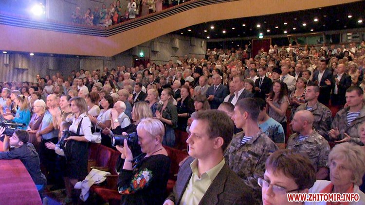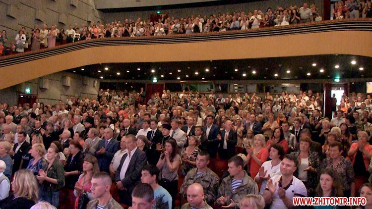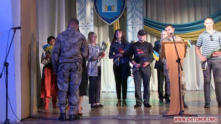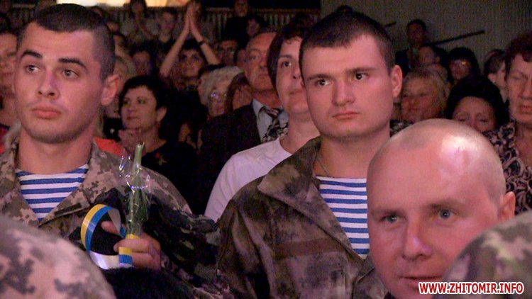 Присутні стоячи вітали військовослужбовців в/ч В1740, які отримували відзнаки житомирського міського голови. Зал скандував «Герої!», а жінки крадькома витирали сльози.