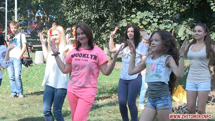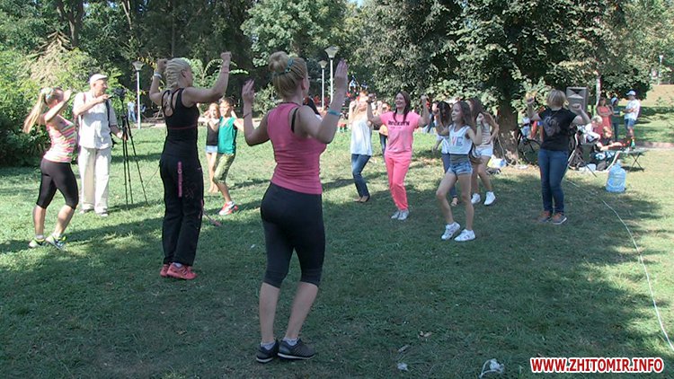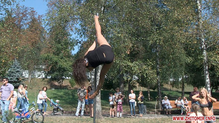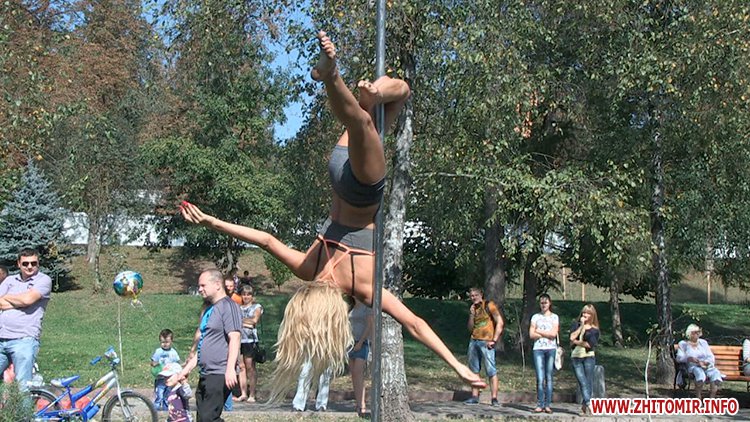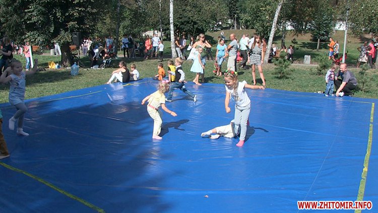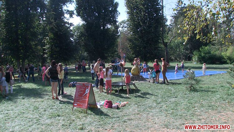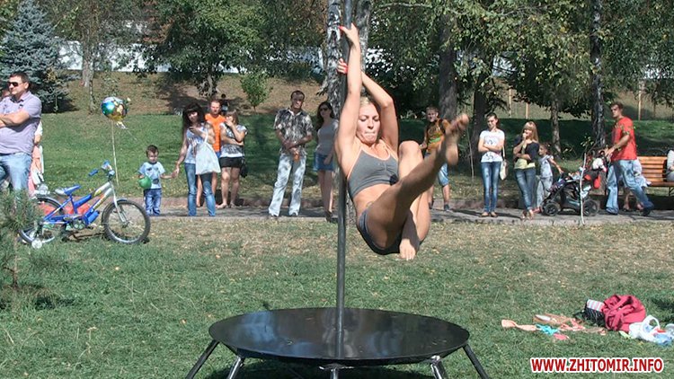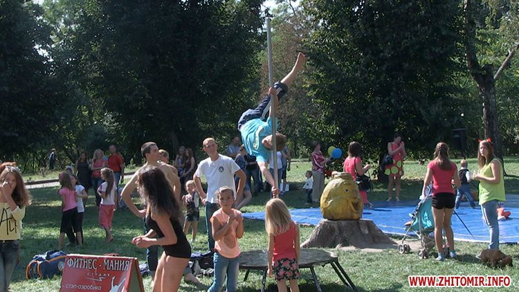 В День міста біля арки у парку культури та відпочинку виступають творчі колективи. На галявині біля підвісного мосту влаштували майданчик, де житомиряни можуть активно відпочити: тут проходять майстер-класи з танцювального фітнесу, стрип-пластики, є й окреме місце для розваг малечі.