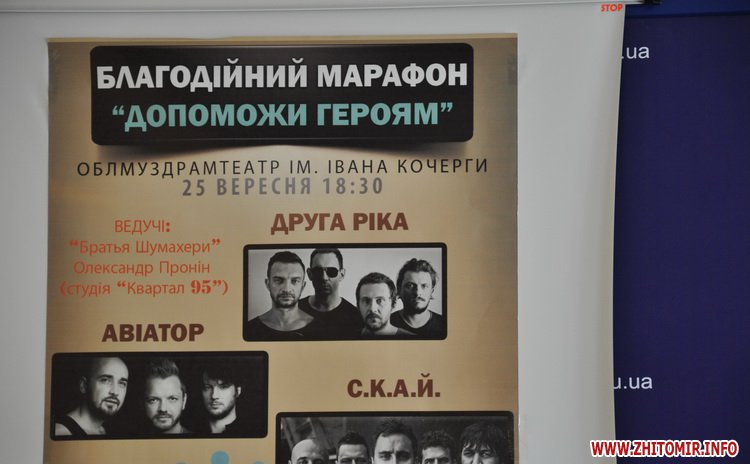 Відсьогодні розпочинається рекламна кампанія марафону: у місті будуть розміщені відповідні сіті-лайти, рекламні афіші, незабаром розпочнеться продаж квитків на благодійний концерт. Взагалі марафон включатиме в себе багато різних акцій і заходів, а закінчиться благодійним концертом, який відбудеться 25 вересня у приміщенні Житомирського академічного українського музично-драматичного театру ім. І.Кочерги. На сьогодні участь у ньому на безкоштовній основі погодилися взяти гурти «Друга Ріка», «С.К.А.Й.», «Авіатор», ведучими будуть артисти «Студії Квартал-95».
