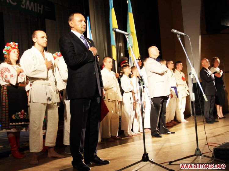 Господар свята, президент Житомирської обласної федерації рукопашного бою, народний депутат Володимир Пехов привітав учасників зібрання та наголосив, що за два десятки років свого існування Федерація рукопашного бою у Житомирській області довела найважливіший життєвий принцип – у здоровому тілі здоровий дух.
