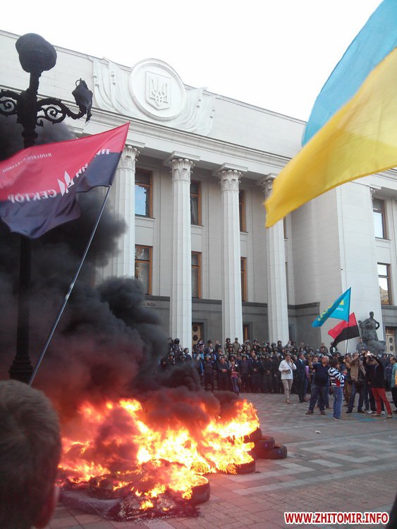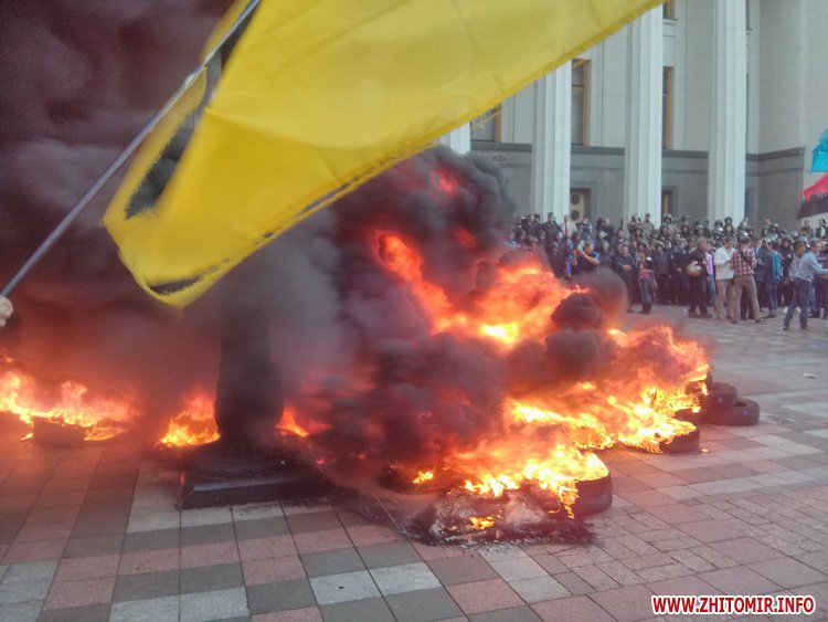 За словами представників ГО «Автомайдан-Житомир», цього разу люди привезли під будівлю парламенту покришки, щоб показати депутатам: вони готові стояти до кінця.