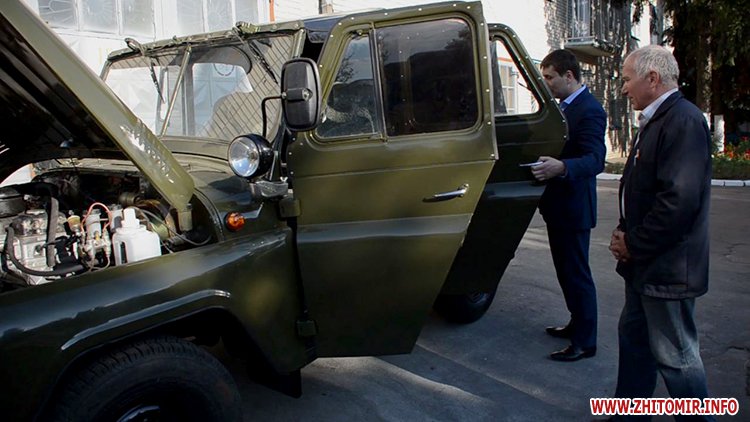 Ще трохи більше місяця тому автівка була не «на ходу». Завдяки професійним механікам КУ «Автобаза санітарного транспорту лікувально-профілактичних закладів охорони здоров’я» Житомирської обласної ради УАЗік вдалося не просто відремонтувати, а і повністю відновити. Нові деталі, перефарбований кузов, обшиті сидіння та навіть застелили хлопцям зручну підлогу – все старилися робити на совість. За рахунок першого заступника глави адміністрації Президента Геннадія Зубка, першого заступника міського голови Сергія Сухомлина та голови Житомирської облдержадміністрації Сергія Машковського проводиться капітальний ремонт таких УАЗів-469 та, окрім них, для потреб військових доправляються броньовані автомобілі. Очільник обласної адміністрації вдячний механікам за роботу, каже чоловіки зробили неможливе, враховуючі, що деталі на такі автомобілі досить важко дістати взагалі.