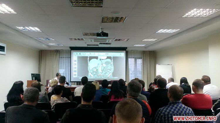 Нещодавно у Житомирі на базі «МДЦ Експерт-Житомир» відбулась наукова конференція лікарів-радіологів. Переймати знання у лекторів міжнародного класу зібралося майже півсотні лікарів. Незважаючи на скрутну ситуацію в державі, декілька разів на рік МДЦ «Експерт» організовують семінари та тренінги для своїх лікарів, підвищуючи професійний рівень фахівців. Метою даного заходу було обговорення стану сучасної рентгенології зокрема магнітно-резонансної томографії (МРТ) та комп‘ютерної томографії (КТ). Перед делегатами виступали признані фахівці в даних галузях Мангов Андрій Володимирович та Рожкова Зінаїда Залманівна.