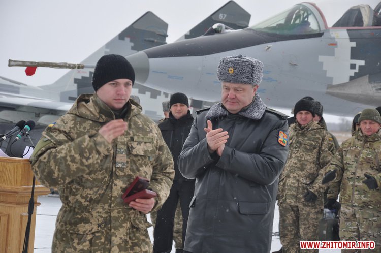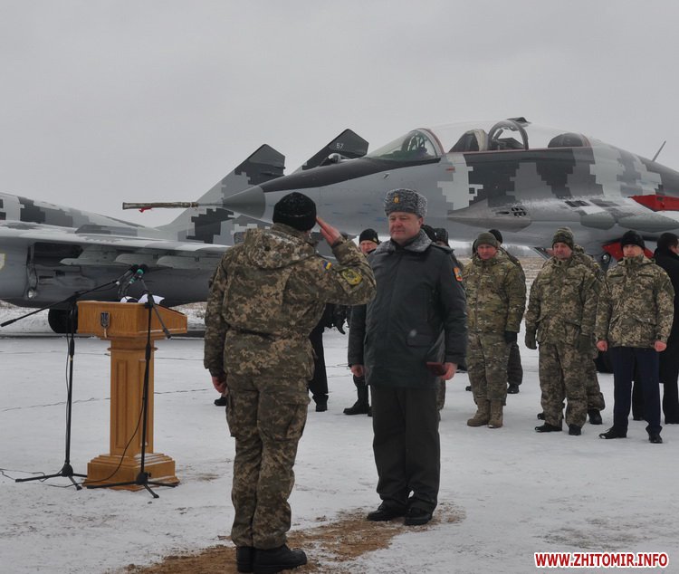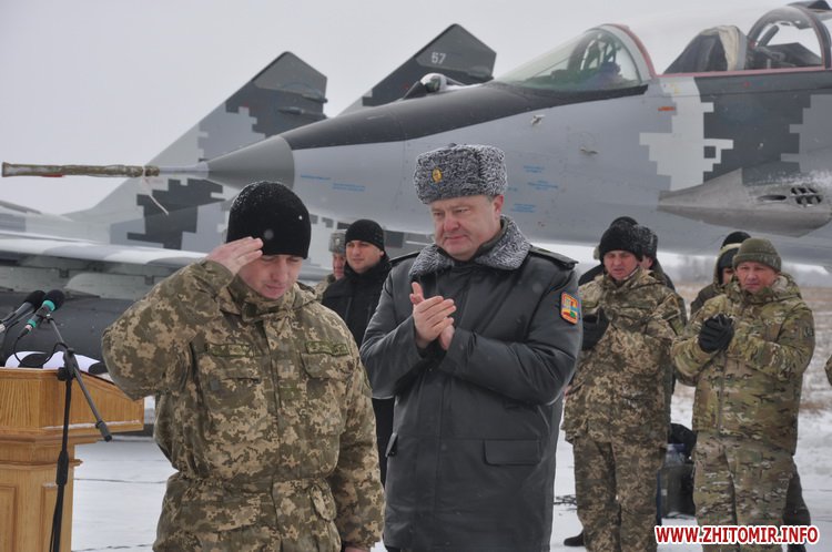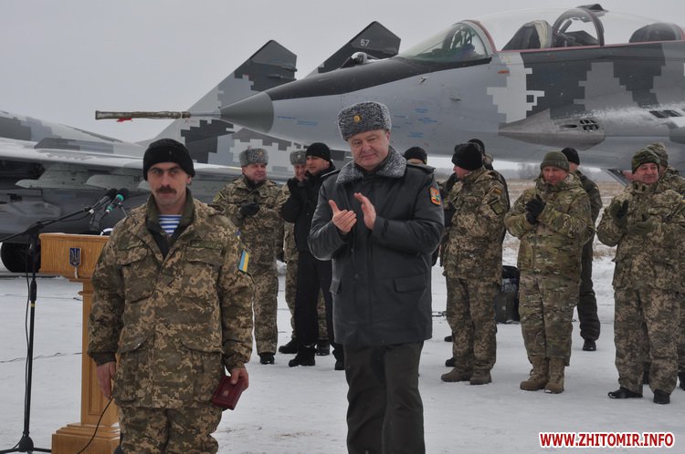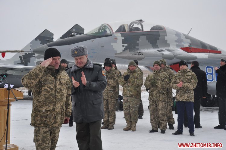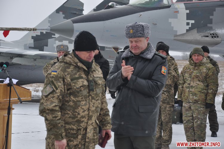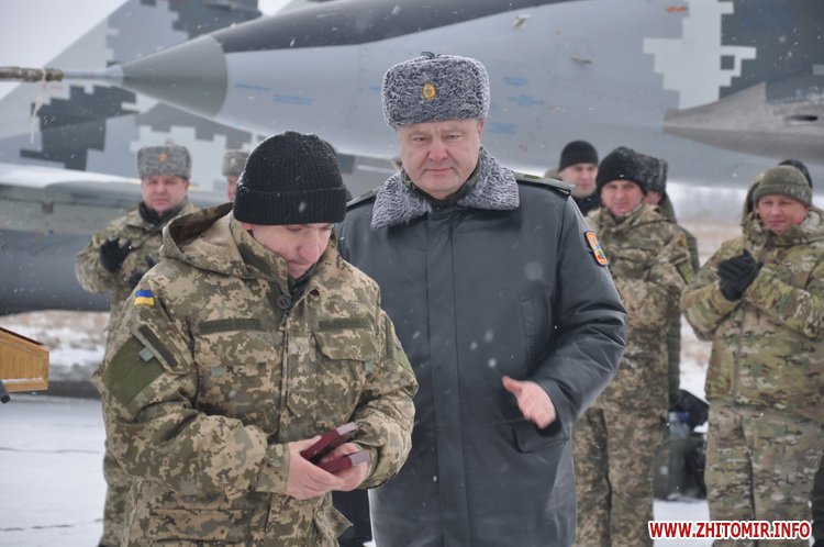 Як повідомляв Житомир.info, 5 січня у Житомирській області з робочим візитом перебував Президент України Петро Порошенко, який передав ЗСУ більше 150 одиниць військової техніки (фоторепортаж). На військовому аеродромі під Житомиром Президент розповів, за яких умов в Україну прийде мир.
