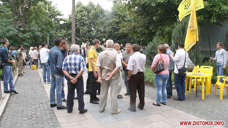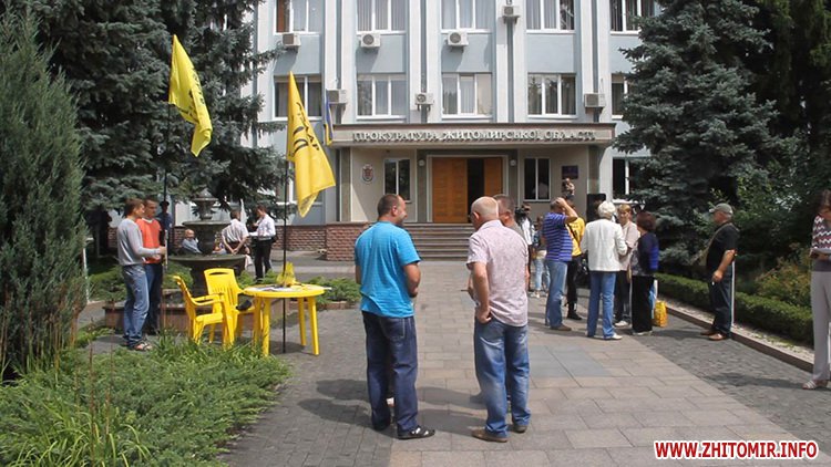 Кілька добровольців батальйону «Айдар» та колишні працівники структурного підрозділу «Молочний завод» ТОВ «МВК ЛІДЕР» прийшли пікетувати Житомирську обласну прокуратуру вранці 15 липня. Люди розповідають, що у травні 2015 працівників змусили написати заяви на звільнення і чотирьом сотням працівників не виплатили заробітну плату за три місяці.