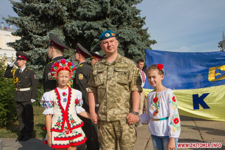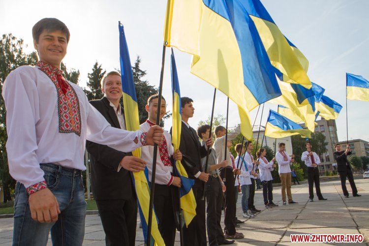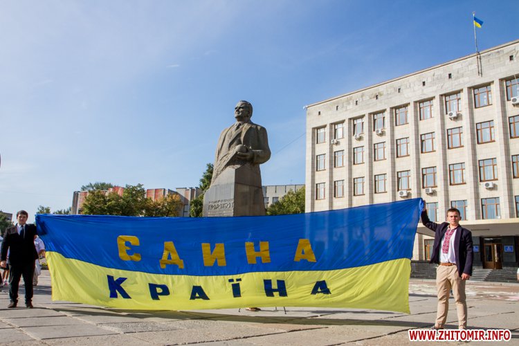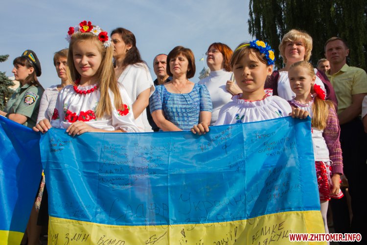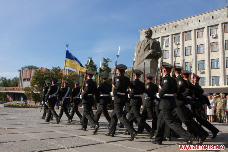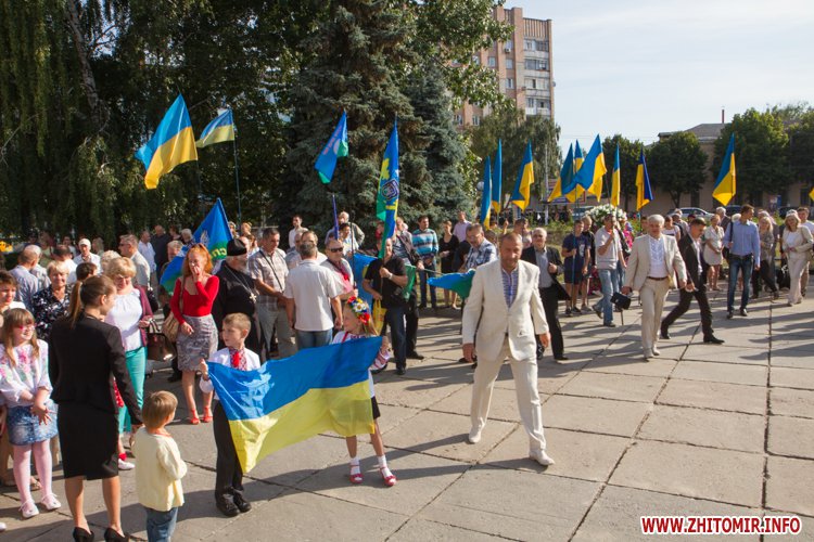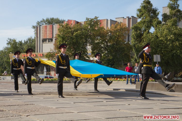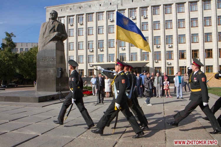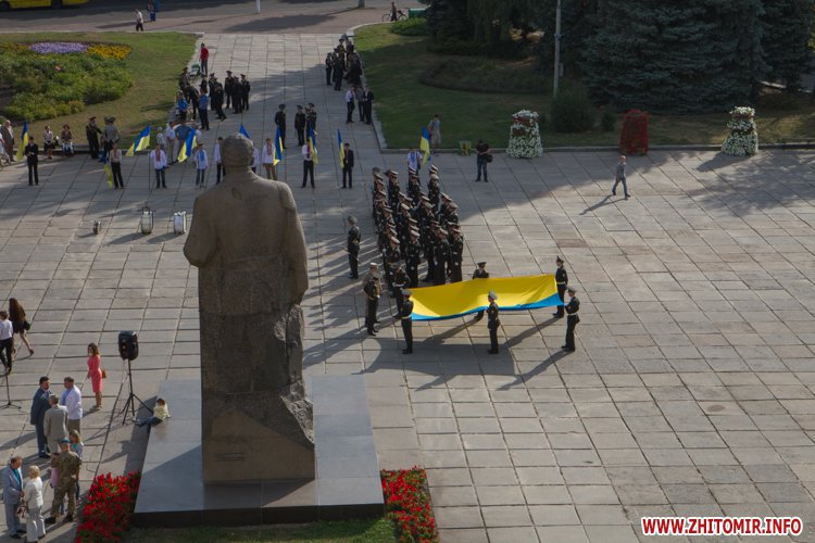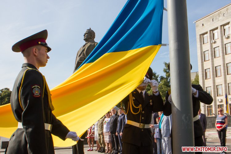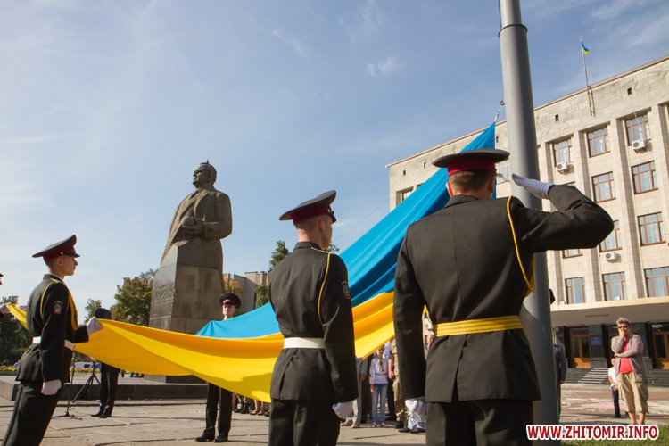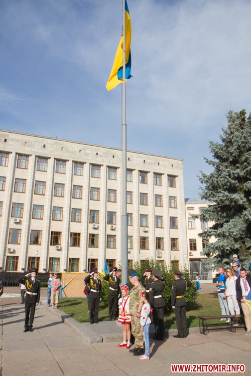 Зі святом Державного прапора житомирян привітати керівники міста та області. Також цього дня відбулося урочисте проходження роти почесної варти з бойовими прапорами. О 12.00 місцеві жителі хвилиною мовчання пом’януть загиблих воїнів - захисників України.