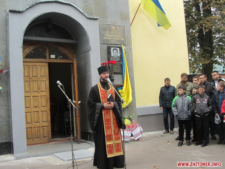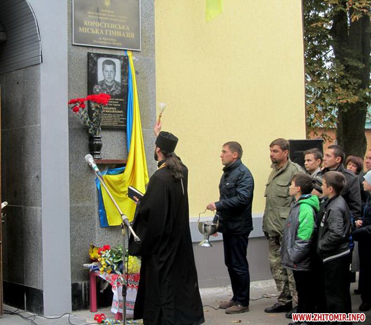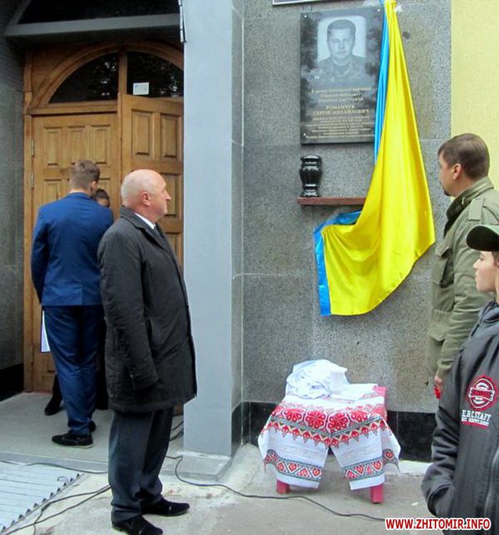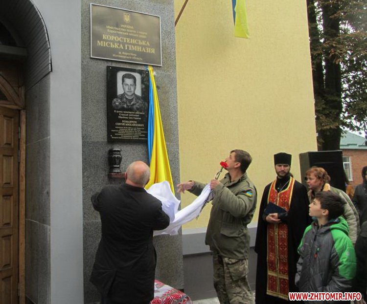 13 жовтня на приміщенні Коростенської міської гімназії було відкрито меморіальну дошку загиблому герою АТО Сергію Романчуку.