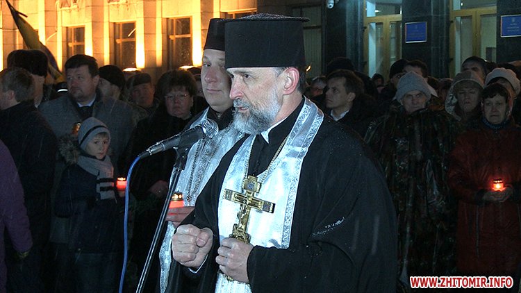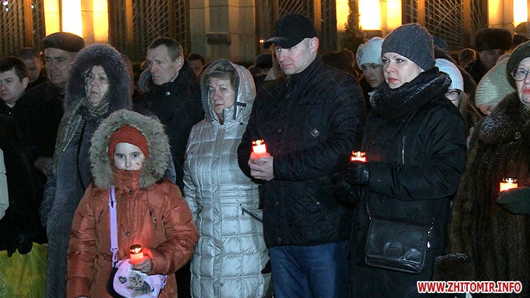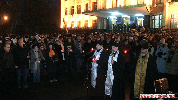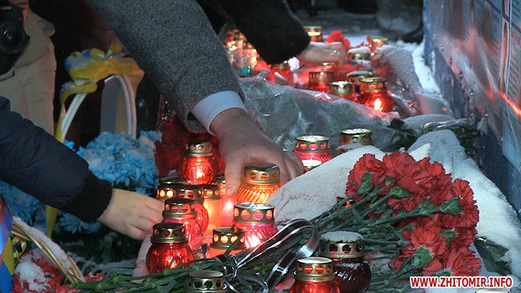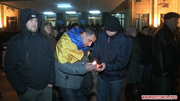 Ввечері 20 лютого кілька сотень житомирян зібрались на майдані Корольова. Люди прийшли з лампадками та квітами, щоб вшанувати пам’ять загиблих Героїв Небесної сотні.