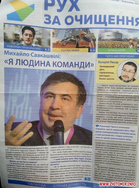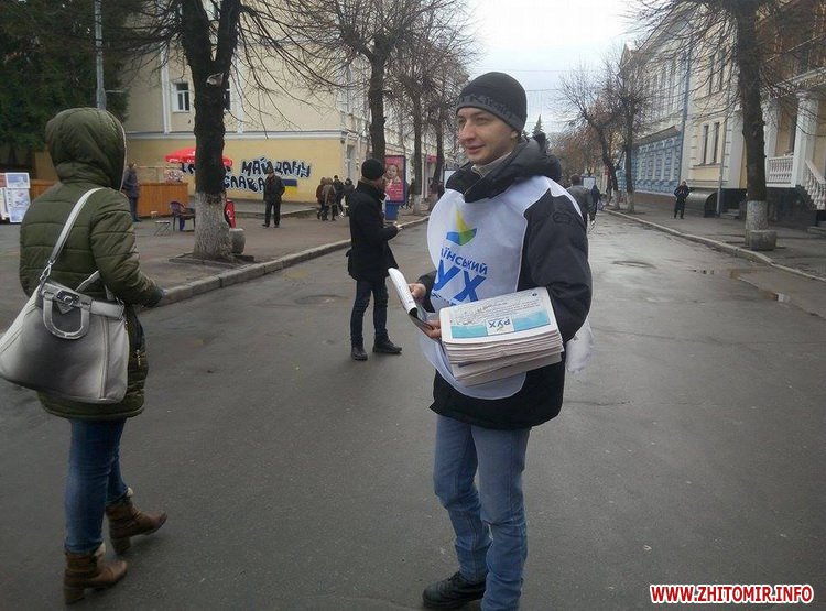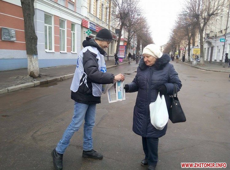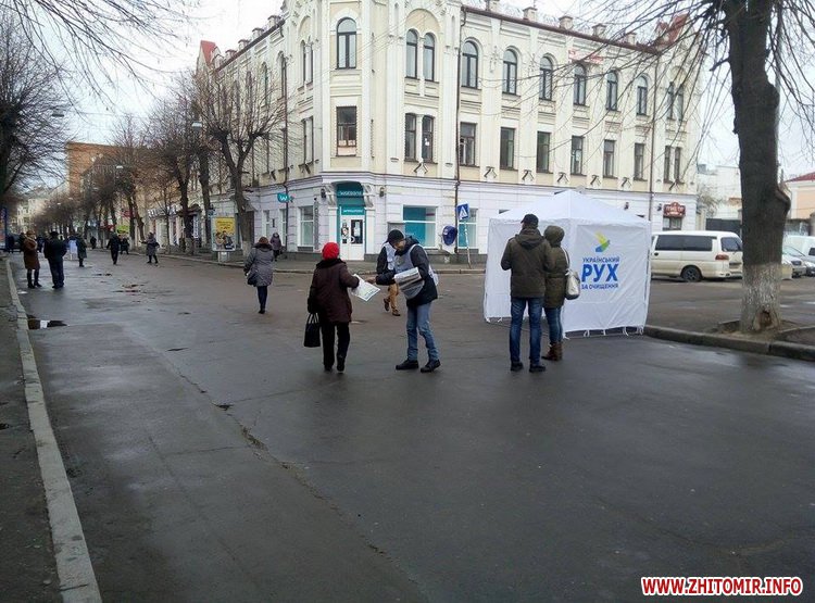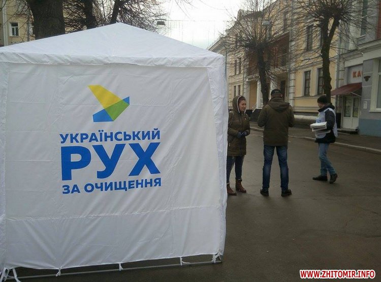 26 лютого в Житомирі на вул.Михайлівська встановили намет «Український Рух за очищення» та роздають газети.