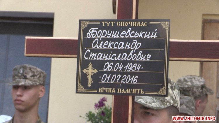 У місті Чуднів Житомирської області 3 липня попрощалися з бійцем 58-ї окремої мотопіхотної бригади Олександром Борушевським. Рік тому боєць з позивним «Поляк» підписав контракт і 10 липня минулого року вирушив у зону АТО. Смертельне поранення він отримав на Донеччині поблизу смт. Верхньоторецьке 1 липня.