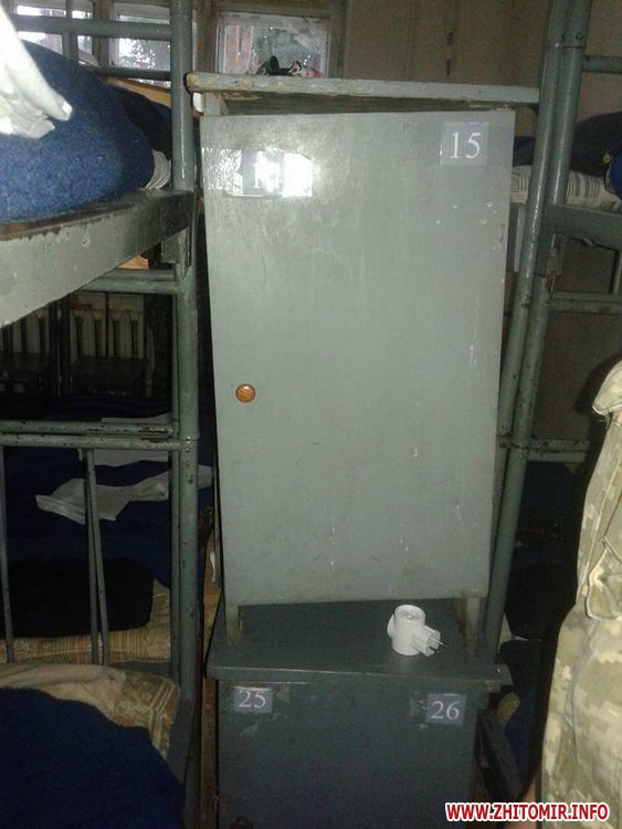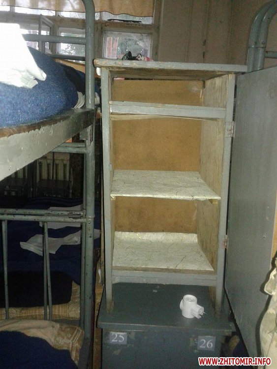 «Ми всі контрактники, ми приїхали на фахову підготовку на 2 місяці, але тут погані умови, фахово займатися ми не можемо. Немає відповідних місць, щоб митись, води немає, розеток немає. Тут контрактники з усієї України, ще плюс курсанти, які поступають в інститут Корольова, ще срочники тут є. Хто мав можливість, по знайомству у Житомирі знімають житло, 10, можливо, дівчат, по тисячі гривень платять і їздять. Цей центр при інституті Корольова, тут же їхні курсанти навчаються. Ми заїхали сюди 18 липня, і ще сюди мають приїхати сержанти. Куди вони будуть дівати людей – ми не знаємо. Коли ми звертаємось, нам кажуть: да, ми розуміємо, але нема фінансування, не подобається – пишіть рапорт, розвертайтеся, ми вас сюди не запрошували, це ваші начальники вас сюди направили, нам сказали, що отаку кількість ви маєте підготувати і все, всі в таких умовах були, звикнете і ви. У всіх одна позиція: всі терпіли, всі вивчились, і ви так будете, не подобається – пишіть рапорти і їдьте додому», – зазначають військовослужбовці.