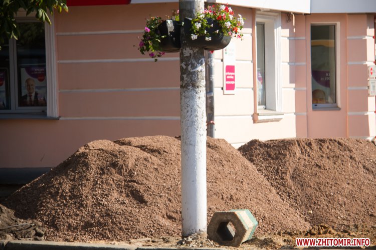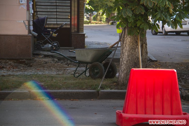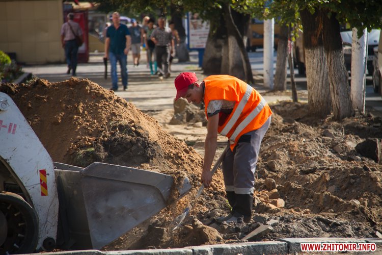 У центрі Житомира триває капітальний ремонт тротуарів. 30 серпня комунальними зняли верхній шар асфальту та стару плитку з тротуару про вулиці Героїв Сталінграда.