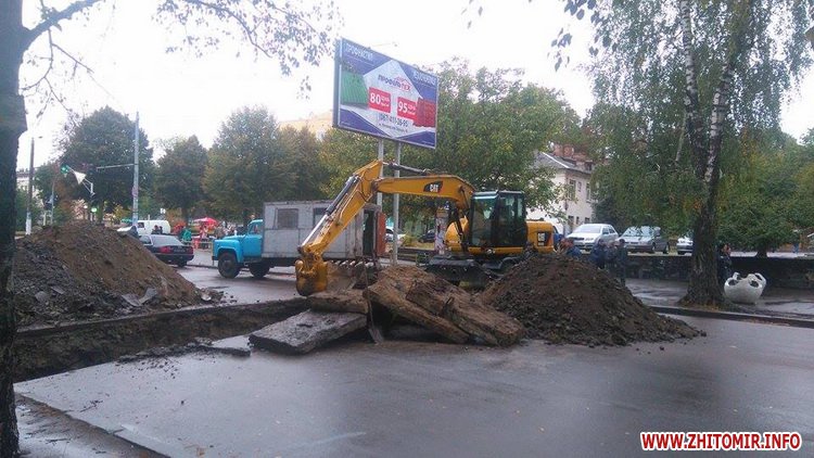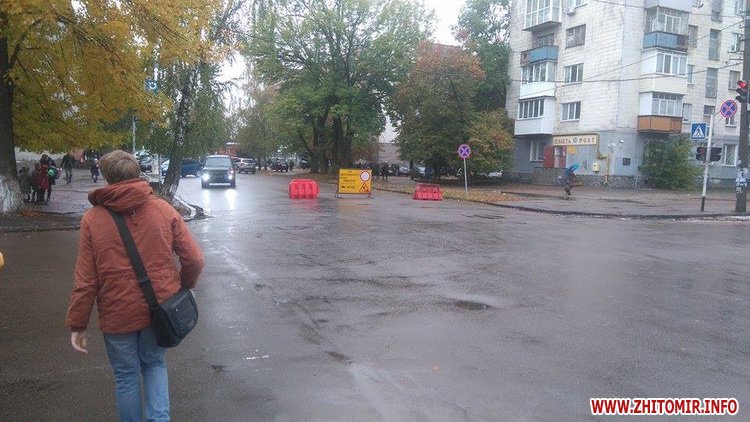У Житомирі 10 жовтня комунальники почали роботи із заміни теплової труби по вулиці І. Франка: частину дороги перекрили.