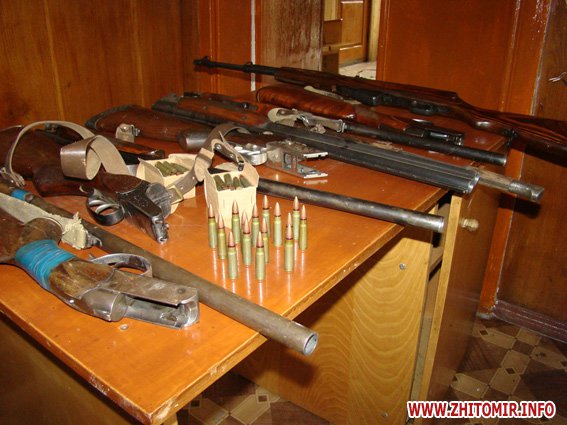 «За час проведення місячника здачі зброї, боєприпасів та вибухових речовин до підрозділів поліції передано майже сотню мисливських гладко ствольних рушниць, зо два десятки пристроїв для відстрілу гумових куль та газової зброї. Окрім того, маємо 22 одиниці зброї тих видів, які використовуються Збройними Силами України. Загалом здано 180 одиниць зброї і спецзасобів та понад 850 боєприпасів, найбільше серед останніх армійських зразків», - повідомив заступник начальника Головного управління Національної поліції Житомирщини Артем Лисогор.
