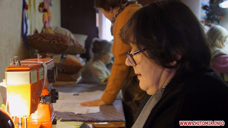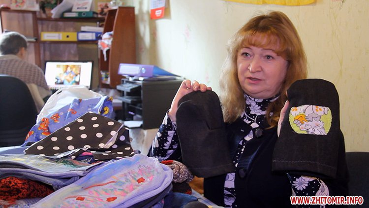 «Шиємо рукавички зі старих джинсів. Ми ще співпрацюємо з дітками з молодіжної недільної школи. Вони їх розмальовують отакими різними візерунками, сонечками, щоб хлопці морально відпочивали», - розповідає керівник благодійної організації «Турбота про літніх» у м. Житомирі Таїсія Войцеховська.