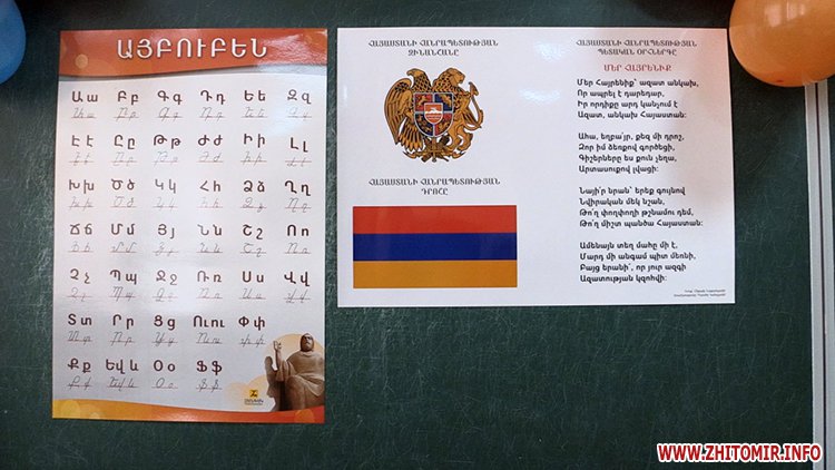Повітряні кульки, вірменський алфавіт, на партах - зошити та книжки. За підтримки «Житомирської обласної общини вірмен «Еребуні» на базі 12 школи відкрилася перша у місті та області вірменська суботня школа.