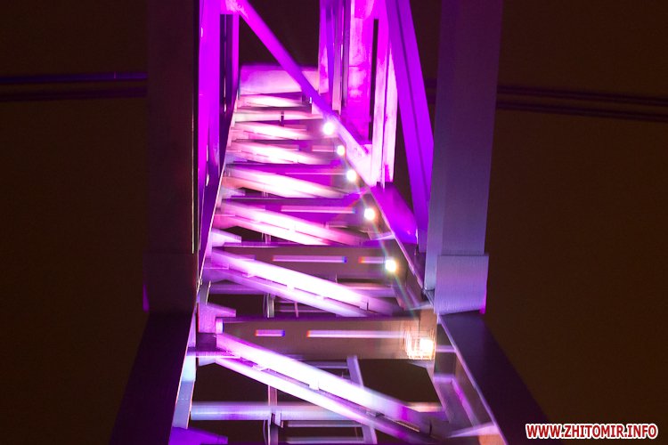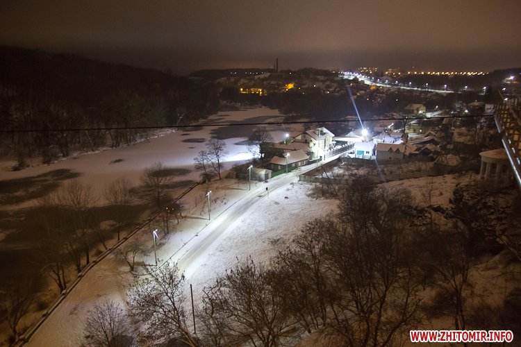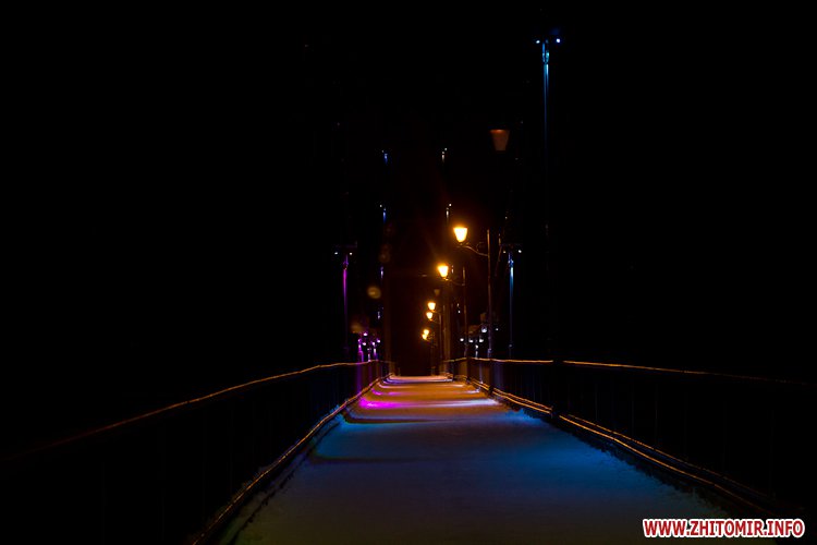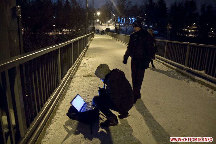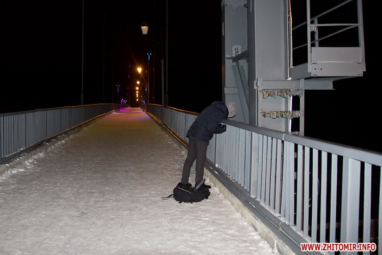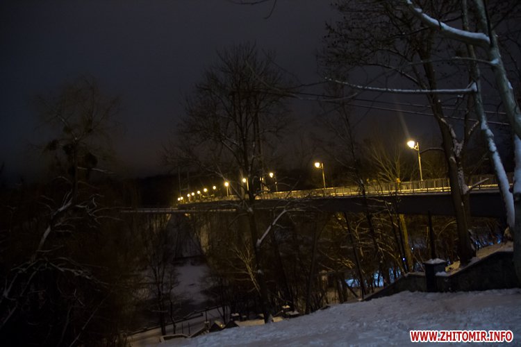 У Житомирі 18 грудня в парку Гагаріна на пішохідному мосту комунальники протестували нове освітлення.
