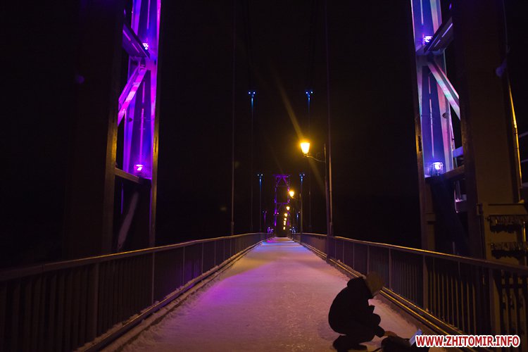 Нагадаємо, 1 грудня на підвісному мосту в житомирському парку Гагаріна комунальники монтували нове освітлення.