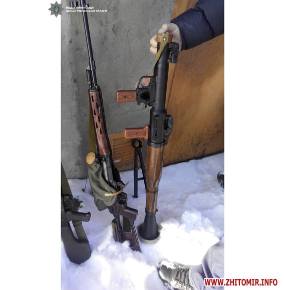 «В ході огляду гаражного приміщення у місті Житомирі, яким користувався 43-річний зловмисник, поліцейські вилучили арсенал зброї: автомат, кулемет, гвинтівка, десять гранат, п’ять пострілів РПГ та більше тисячі набоїв, які рахувалася втраченими у зоні АТО. Тож за фактом незаконного поводження зі зброєю, бойовими припасами або вибуховими речовинами за частиною 1 статті 263 Кримінального кодексу України у поліції проводять досудове розслідування», - інформує рівненська поліція.